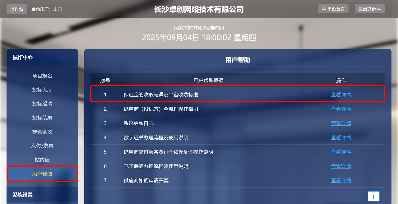 未中标供应商将不收取任何费用(投标保证金将全额原路返还);对中标供应商系统会将差额(投标保证金 - 服务费)原路退回给中标供应商。具体收费标准请登录系统后,点击左侧菜单中的<用户帮助>查看